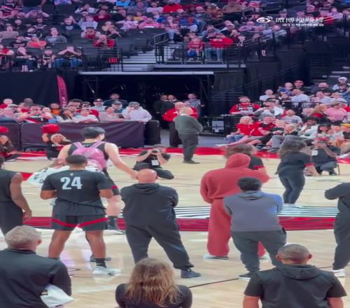 太喜感了!杨瀚森全神贯注模仿啦啦队跳舞粉色书包真显小又吸睛